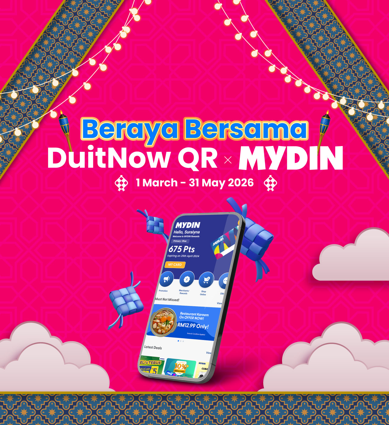 This Raya, add a touch of cheer to your hectic festive shopping. Spend a minimum of RM100 at participating MYDIN outlets, pay with DuitNow QR and walk away with instant vouchers up to RM10.