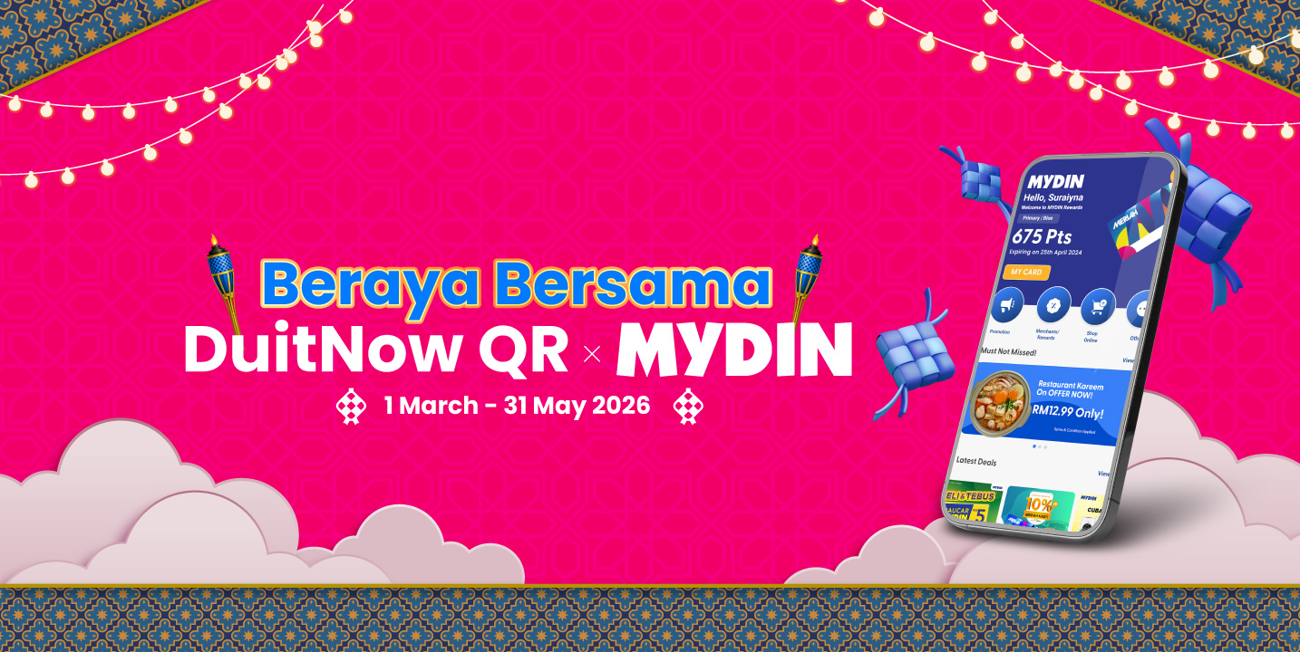 This Raya, add a touch of cheer to your hectic festive shopping. Spend a minimum of RM100 at participating MYDIN outlets, pay with DuitNow QR and walk away with instant vouchers up to RM10.